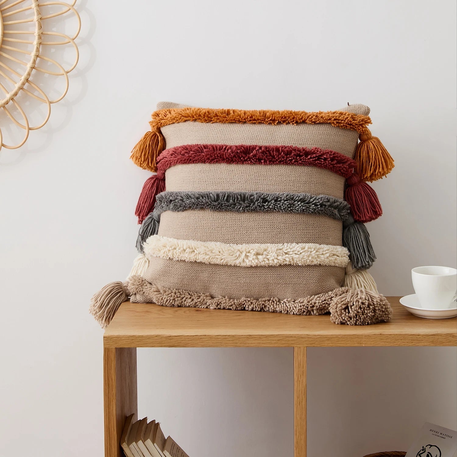 With its premium tufted texture, hand-tied tassels, bold patterns, and vibrant earthy tones, this cushion cover becomes more than an accessory; it becomes the soul of your room. Sized perfectly for standard throw pillows, it's the ideal accent for your living space, bedroom, or office, bringing warmth and personality wherever it's placed. No matter the style of your room, this chic boho pillow cover doesn’t just blend in—it amplifies.